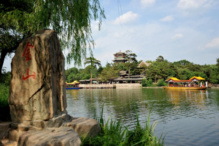 建筑布局大多数从江南“抄”过来的,比如金山岛的布局则来自江苏镇江金山,湖中的两个岛分别有两组建筑,一组叫“如意洲”,一组叫“月色江声”。