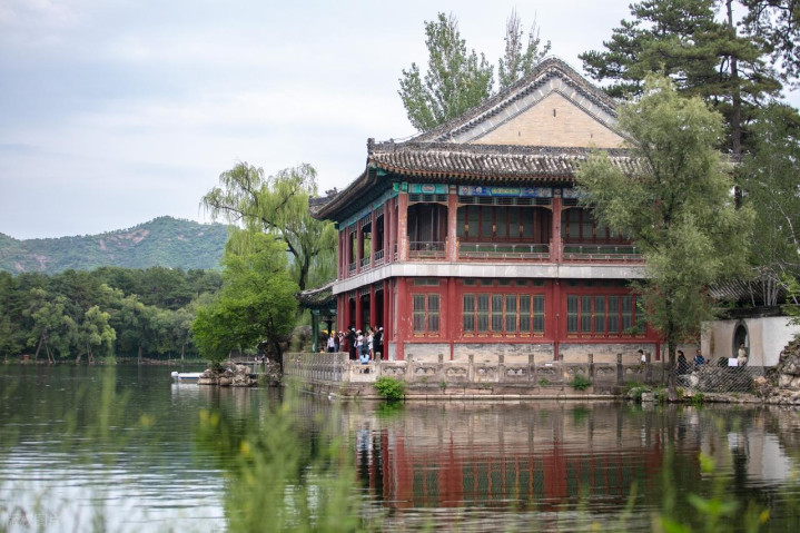 穿过宫殿区,视野豁然开朗,山庄的苑景区又可分为湖泊区、平原区、山区三部分,皇帝在这里接见各族人等,相当于带领客人在微缩的江山里巡游一遍了。