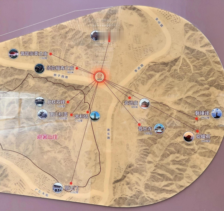 避暑山庄、外八庙............主要的酒店和餐饮都集中在这里,你至少70%的时间会花在这个区域。