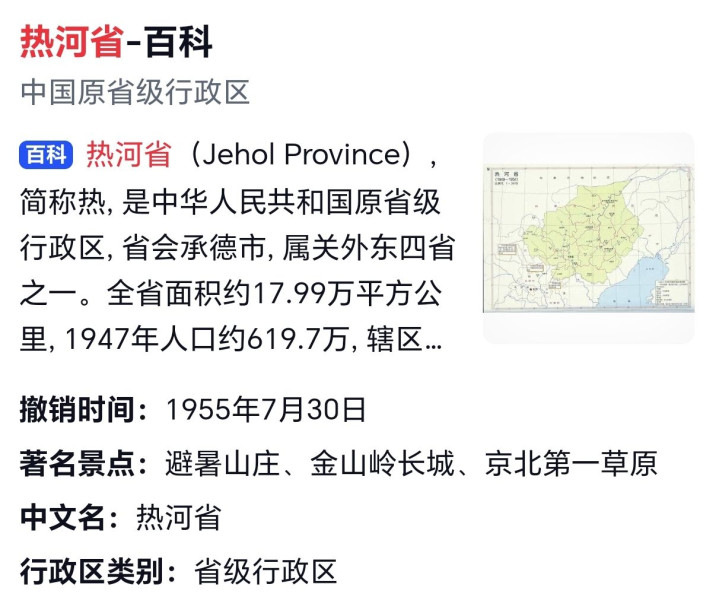 既然提到热河,就不得不提一嘴承德历史上第二个高光时刻了—即1928年到1955年,近三十年的热河省省会时期。