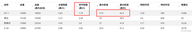 生存性方面,ZH-1的基础血量仅有14600,相当贫血。但隐蔽相当优秀,尤其是空中隐蔽达到遥遥领先的1.76km,甚至可以先手点亮潜艇。37.5节的航速结合580m的回旋半径也不错,综合生存性可以。