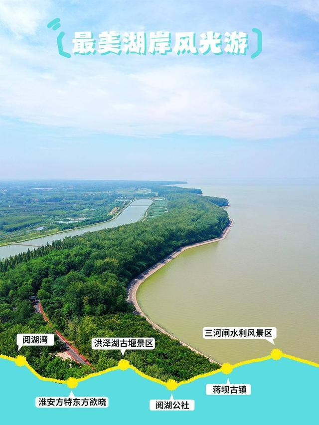 线路以洪泽区“滨湖亲水·最美湖岸风光”为主题,串起阅湖湾、淮安方特东方欲晓、洪泽湖古堰景区、阅湖公社、蒋坝古镇、三河闸水利风景区等,以大湖风光联结乡村美景,你既可以欣赏最美湖岸风光,还可以体验湖畔露营、乡村研学等,感受乡村美好风光。