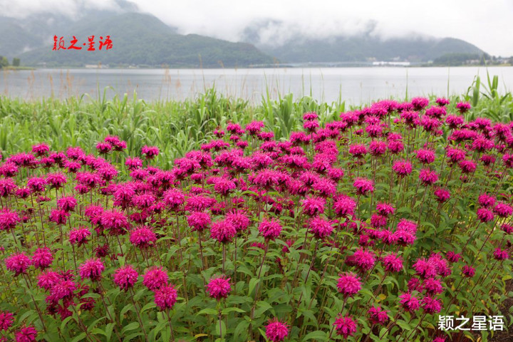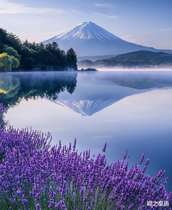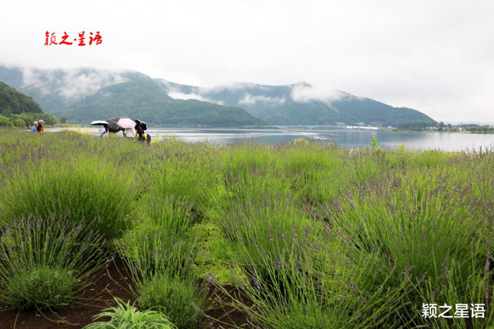 湖畔百花盛开,紫色的薰衣草,将湖畔染上了更加绚丽而梦幻的色彩,当地在每年六七月都会举办河口湖香草节。