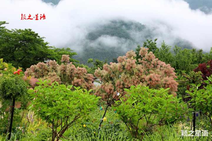 湖畔村庄繁花盛开,色彩缤纷,如梦似幻,花园般的村庄,人们住在花花世界里。