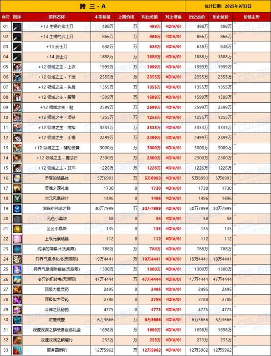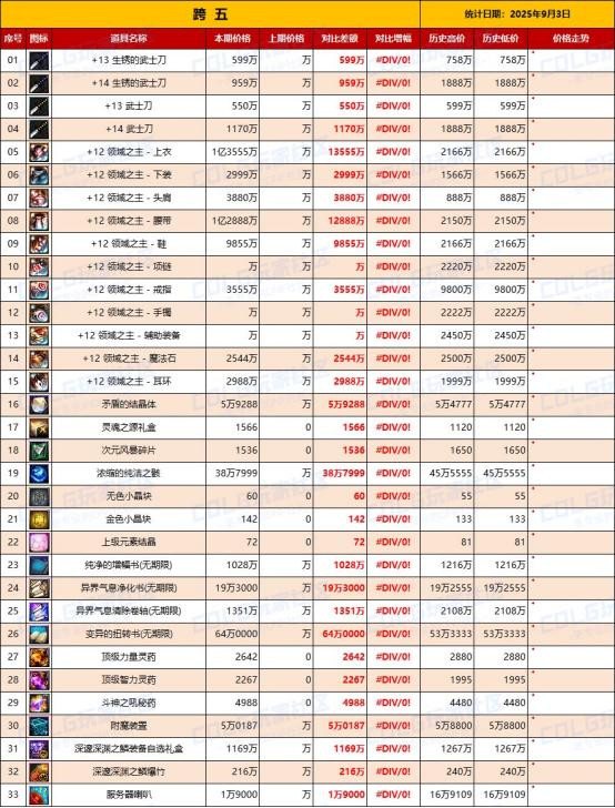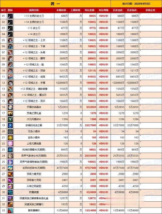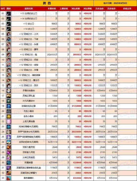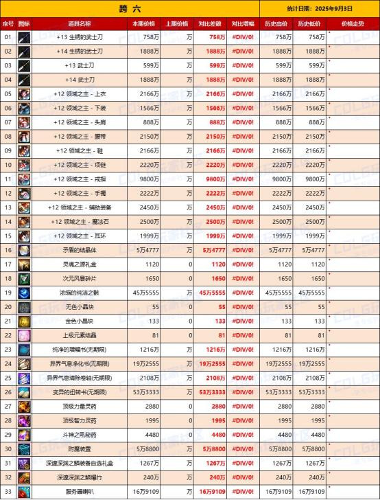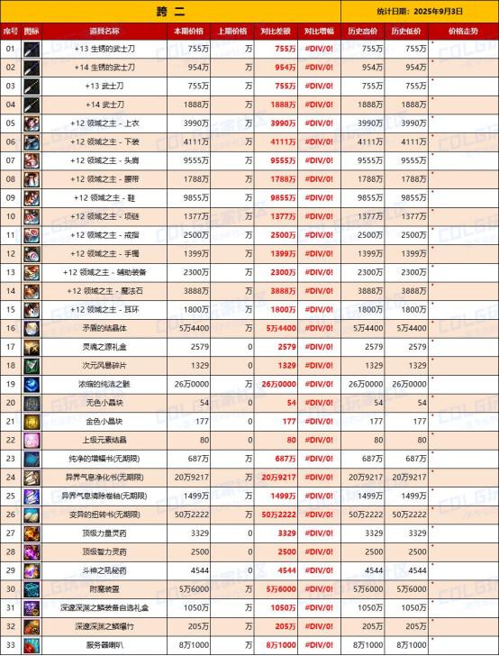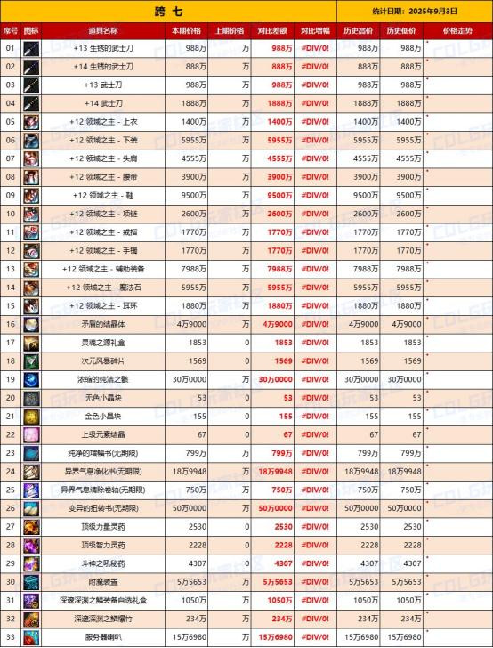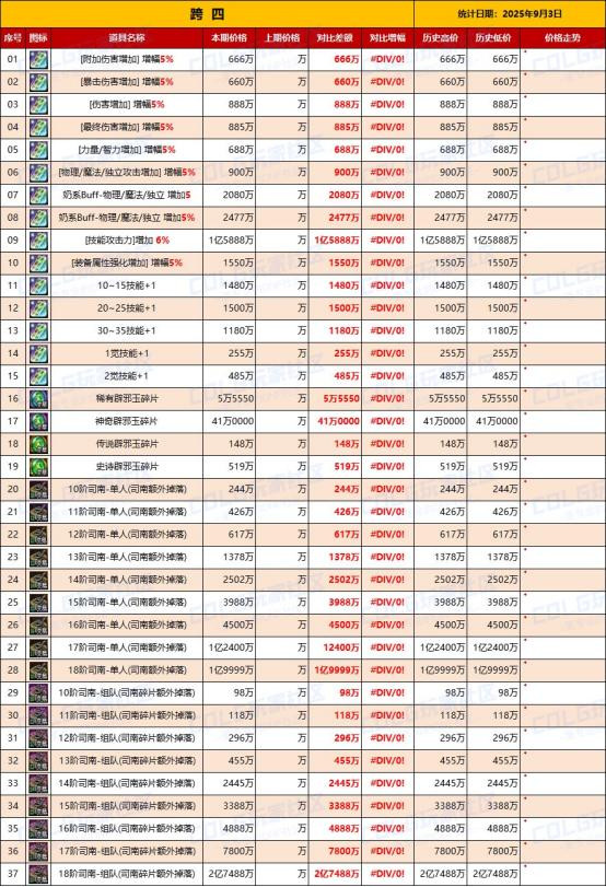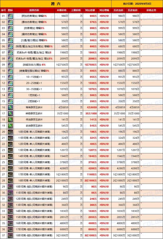 DNF9月最新价格统计, 增幅胚子差价巨大