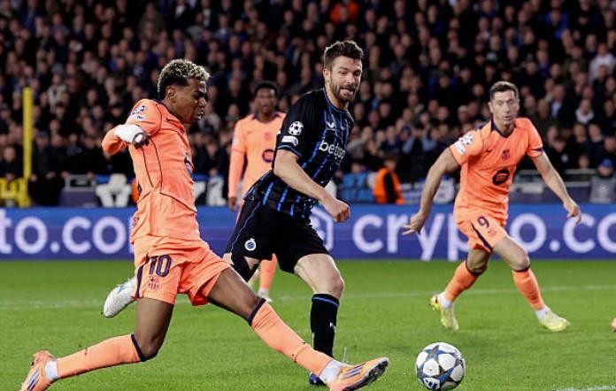 欧冠联赛阶段第四轮,布鲁日3-3巴萨。