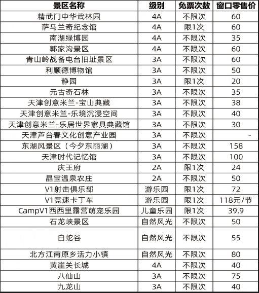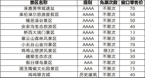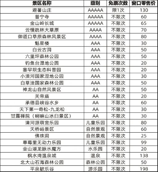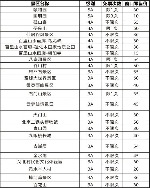 首批入选联票的景区中北京、天津各25家,河北153家。