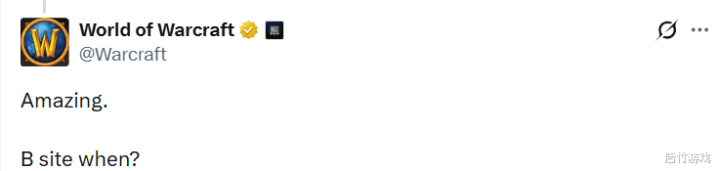 该作品引起魔兽官推的注意,他们在下面回复:“太棒了,啥时候开B点”,并附上一段搞笑视频:一个兽人拿着刀,以第一人称视角在做兔子跳,BGM是CS1.6的经典音效。
