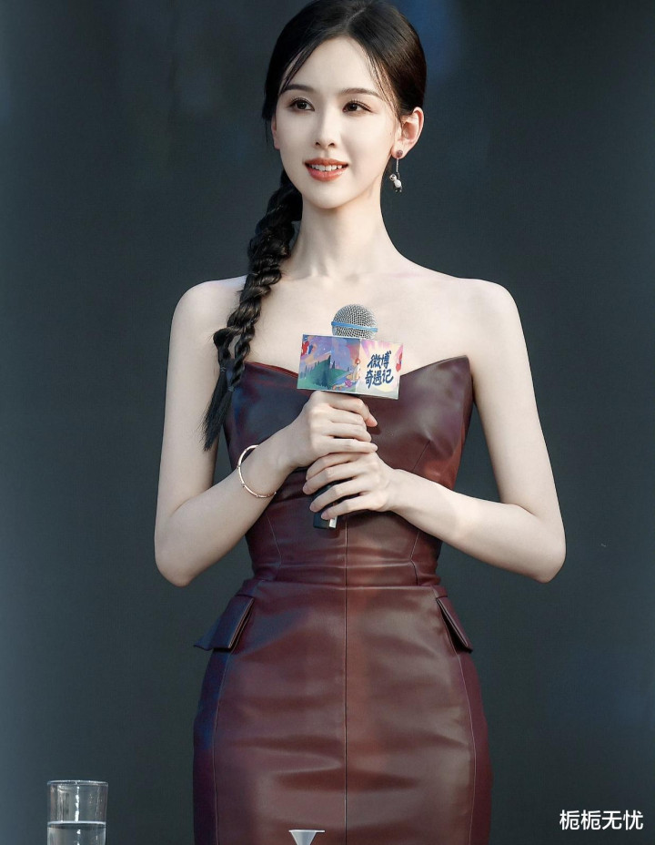 说回这身造型,真的是又飒又欲,完美诠释了“高温美学”的精髓。酒红色皮裙的光泽感十足,在灯光下闪闪发光,仿佛能将人的眼睛都给晃瞎。那抹胸的设计更是巧妙,恰到好处地展现出陈都灵的优雅气质,又增添了几分性感韵味。再配上她那高挑的身材和自信的气质,简直就是行走的荷尔蒙炸弹,让人看了就忍不住直呼“辣晕了”。
