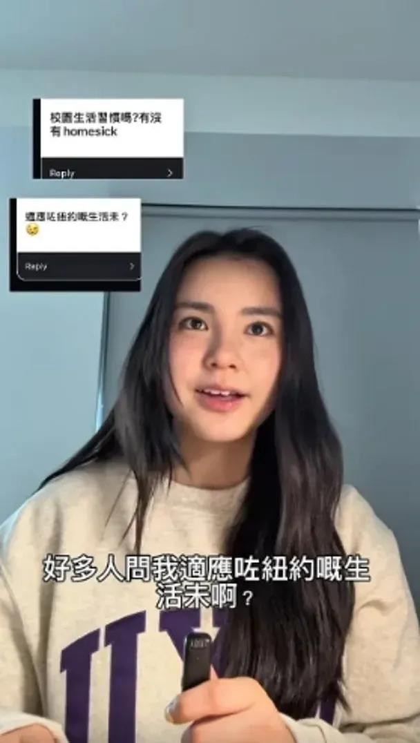 她表示本想开直播与粉丝互动,但由于香港与纽约有12小时时差,要开直播比较困难。她称已开学两周,目前适应纽约生活的速度比之前到新西兰升学时更快。