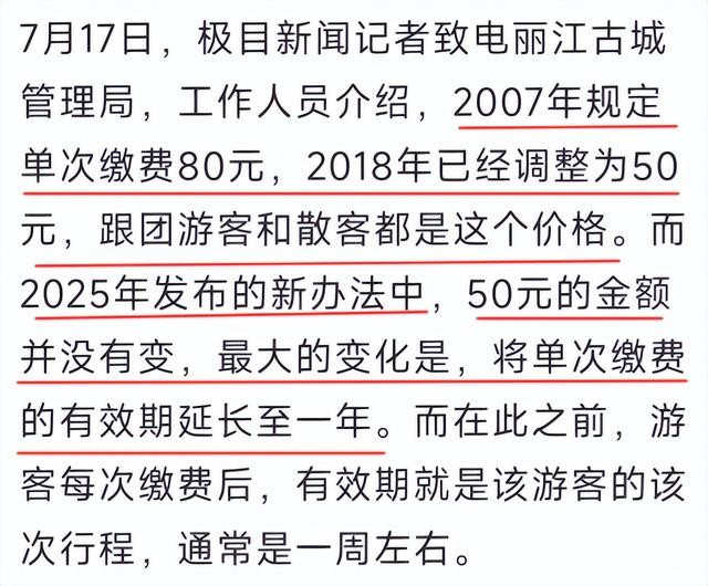 丽江古城这次的收费争议,是文化遗产可持续管理模式的探索。短期来看,新规对多次来游的旅客有利,一年只来一次的游客体验成本上升。收费到底对景区是否有利,8月之后见分晓。