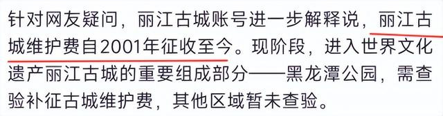 官方回应, 丽江古城年维护费2.9亿, 资金不够才收费交一次玩一年